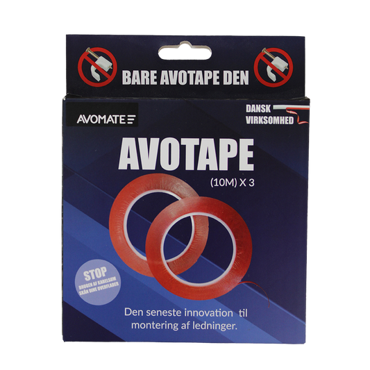 Kabelstyring kunne ikke være nemmere. Med Avotaper kan du nemt og enkelt montere ledninger præcis hvor du vil, uden at beskadige gulve eller vægge.
